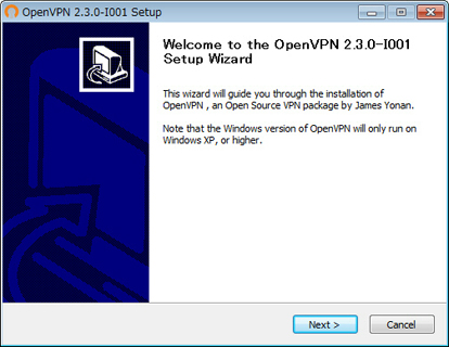 ダウンロードした OpenVPN のプログラムファイルをダブルクリックして実行します。